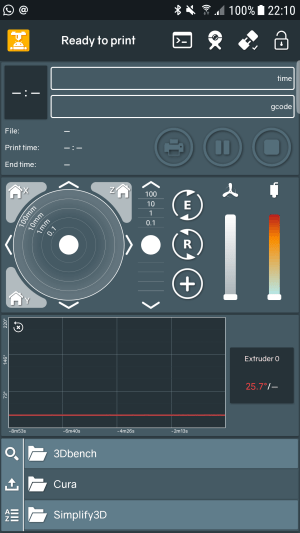 I hope you will enjoy this new way of control. It’s inspired by Pronterface, but adapted to be easily used on a touchscreen. Feel free to give me your feedback on this!